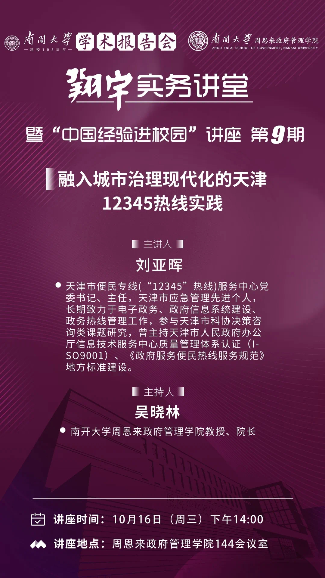 南开大学建校105周年学术报告会暨“翔宇”实务讲堂|刘亚晖:融入城市治理现代化的天津12345热线实践