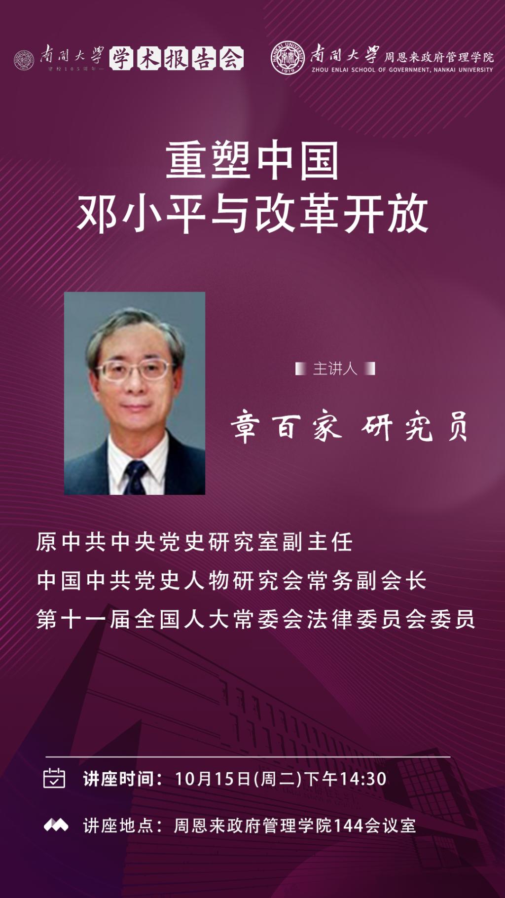 南开大学建校105周年学术报告会|章百家:重塑中国——邓小平与改革开放