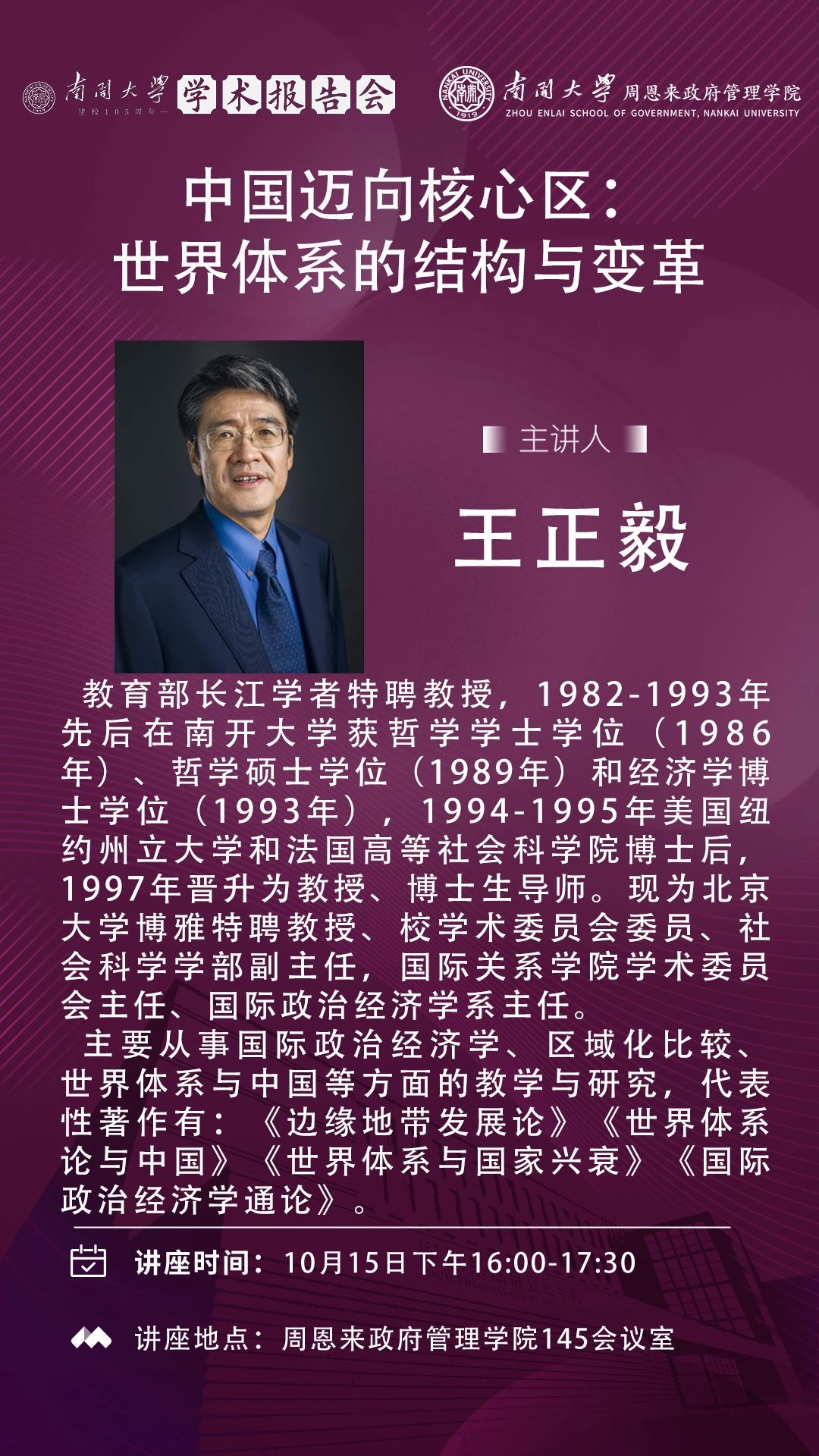 南开大学建校105周年学术报告会|王正毅:中国迈向核心区:世界体系的结构与变革