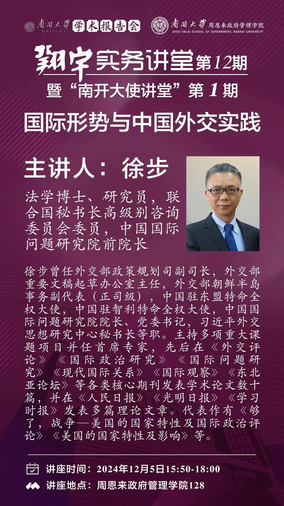 南开大学建校105周年学术报告会|徐步:国际形势与中国外交实践