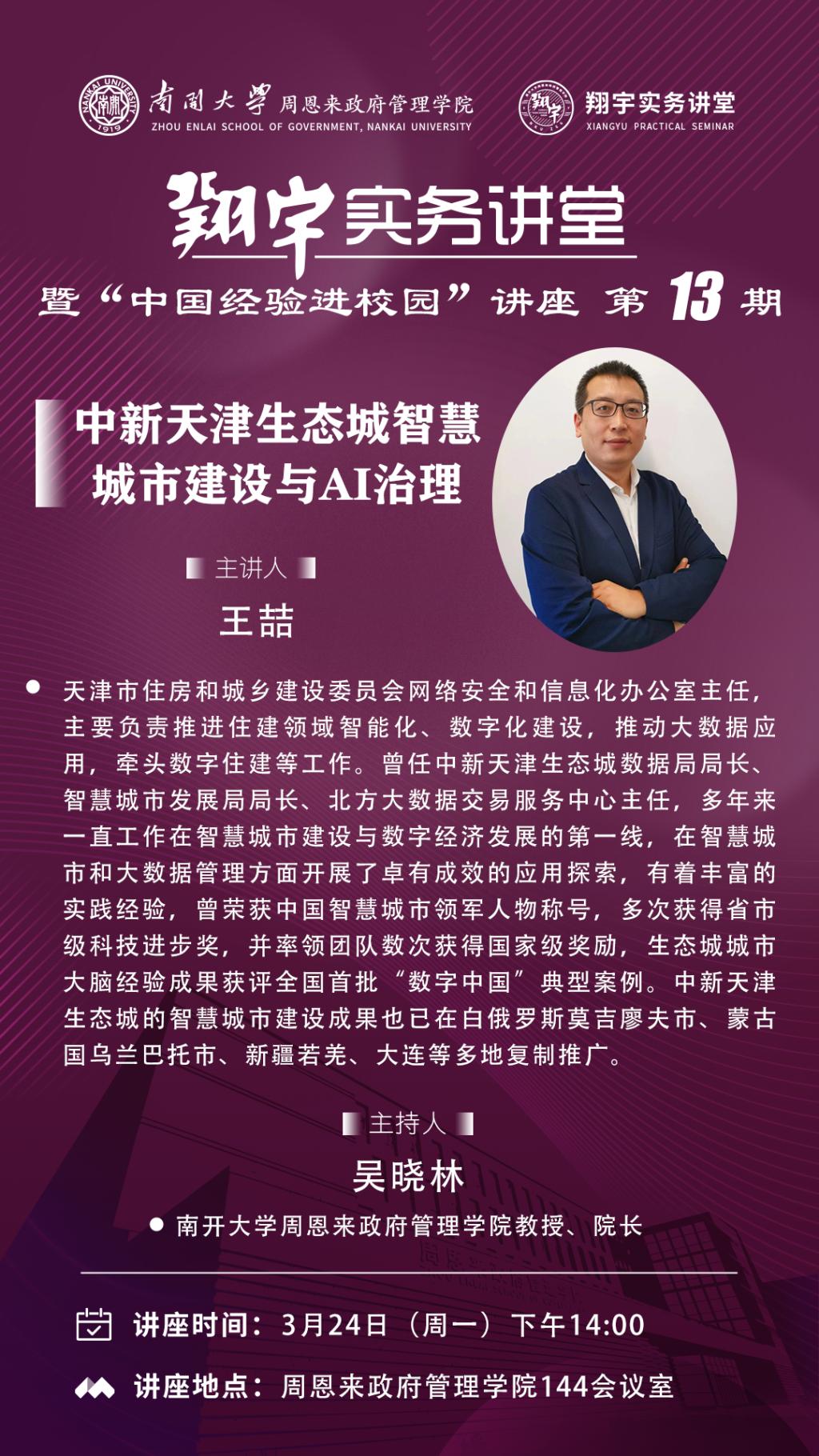 翔宇实务讲堂暨“中国经验进校园”讲座第13期:中新天津生态城智慧城市建设与ai治理