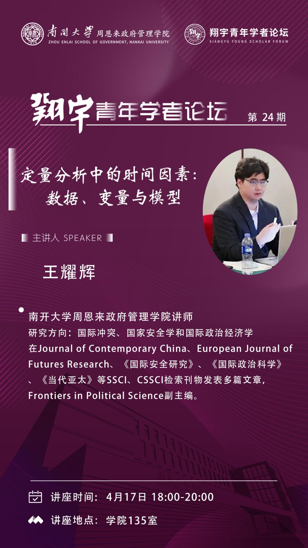 翔字青年学者论坛第24期:王耀辉|定量分析中的时间因素:数据、变量与模型
