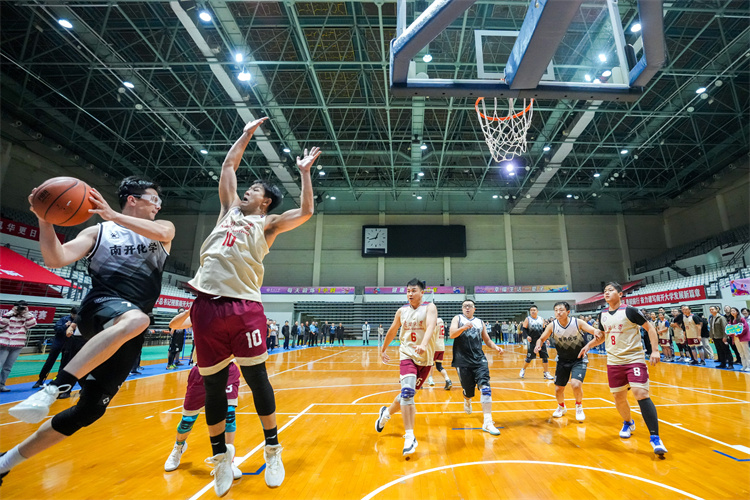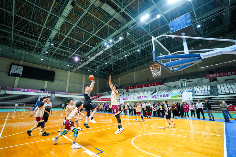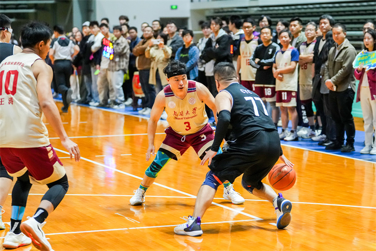 总决赛在两支队伍间展开激烈角逐。双方队员身形矫健,动作挥洒自如,呈现了一场精彩的攻防对决,博得现场观众阵阵喝彩与欢呼。经过近40分钟的比拼,周恩来政府管理学院、药学院联队最终摘得本届“南开五虎杯”总冠军。